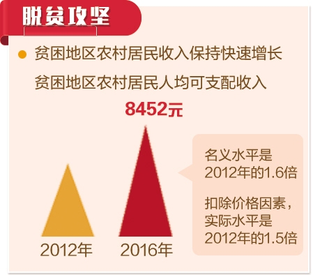 党的十八大以来,以习近平同志为核心的党中央把脱贫攻坚摆到治国理政的重要位置,动员全党全社会力量打响了脱贫攻坚战。5年来,年均减贫超过1300万人。