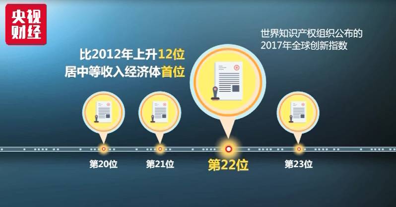 数据显示:前三季度我国的专利申请量达到了248万件,在世界知识产权组织公布的2017年全球创新指数排名中位居第22位,比2012年上升了12位,居中等收入经济体的首位。