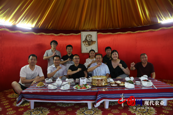内蒙古农牧业产业化龙头企业协会林永亮副会长与一米乡愁团队一起做标志性动作