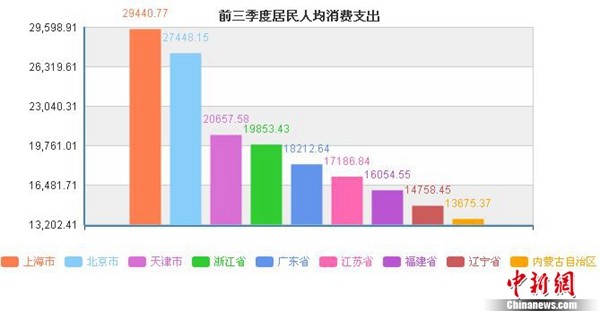 三地前三季度居民人均消费超2万元