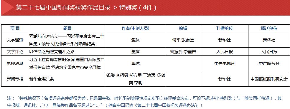 第二十七届中国新闻奖评选揭晓:特别奖4件