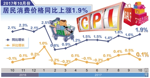 10月份,CPI同比上涨1.9%,涨幅比上月扩大0.3个百分点,创下了今年2月份以来的最高涨幅,连续7个月处于“1时代”。1至10月平均,CPI比去年同期上涨1.5%。