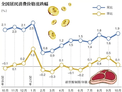 值得注意的是,受“中秋”和“十一”两个节日的影响,旅游服务同比上涨3.6%;鲜菜价格回升,同比上涨0.3%,环比上涨0.4%;牛羊肉价格明显回升的同时猪肉价同比下降10.1%,但节假日消费需求增加也导致猪肉价格降幅收窄。