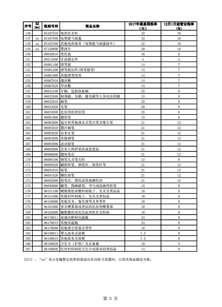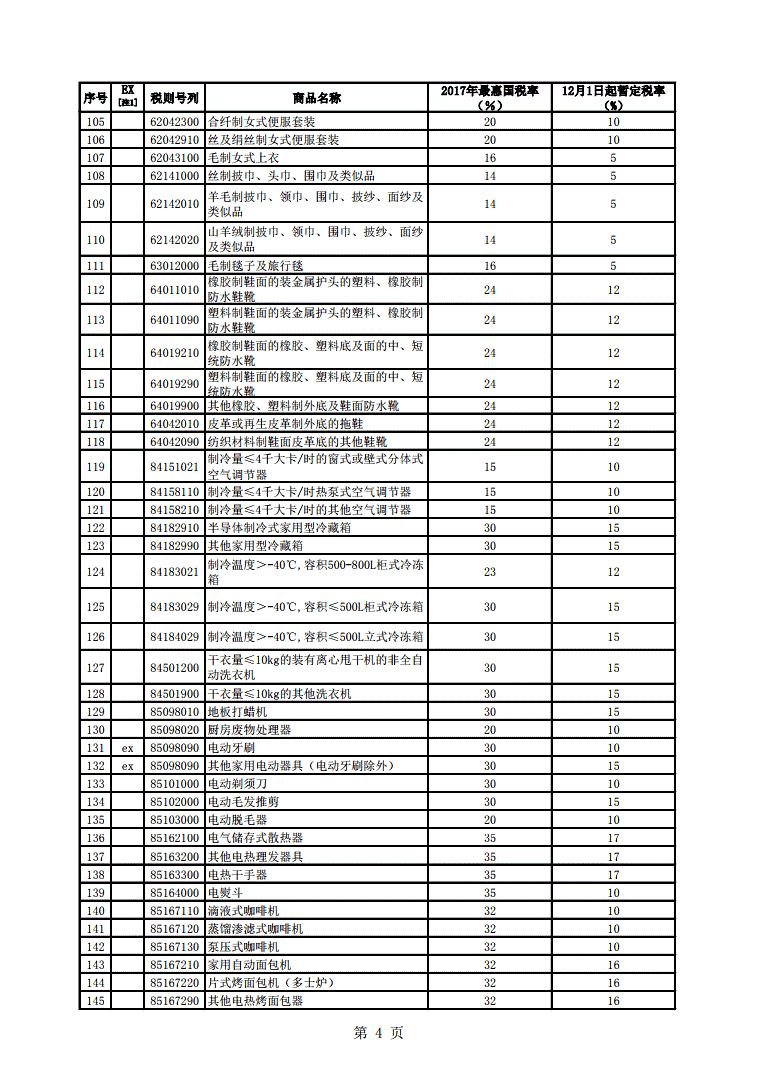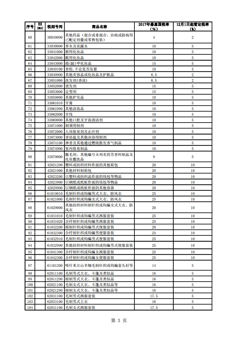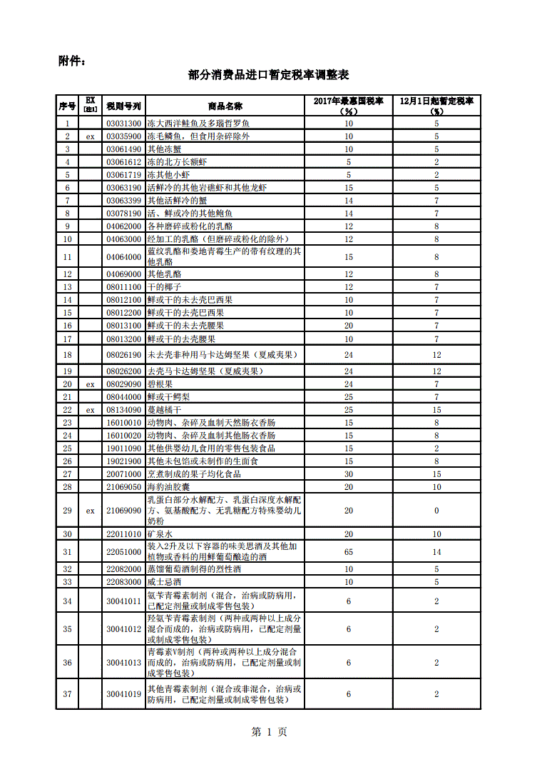 11月24日,据财政部网站消息,经国务院关税税则委员会审议通过,并报国务院批准,我国将对部分消费品进口关税进行调整。自2017年12月1日开始实施。
