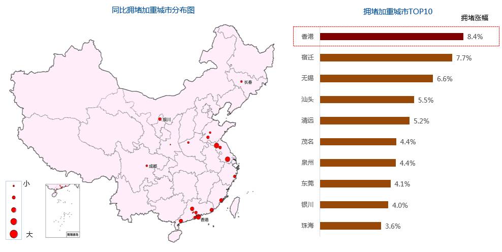 香港拥堵加剧最明显 济南拥堵向东部转移