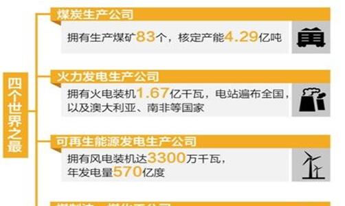 资产规模超过1.8万亿元,拥有33万名员工、8家科研院所、6家科技企业,形成煤炭、常规能源发电、新能源、交通运输、煤化工、产业科技、节能环保、产业金融等8大业务板块……重组后的国家能源集团可谓能源“巨无霸”,按照2016年年底的口径计算,它同时拥有了四个世界之最——