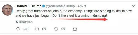 今年7月,特朗普曾在推特上表示:“不喜欢钢铁和铝倾销!”
