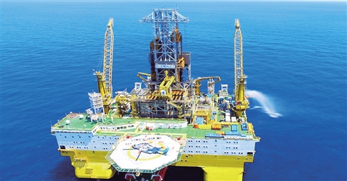 图为二0一七年六月九日,我国在位于广东珠海市东南三百二十千米的南海神狐海域进行试采可燃冰的作业平台。(资料图片)