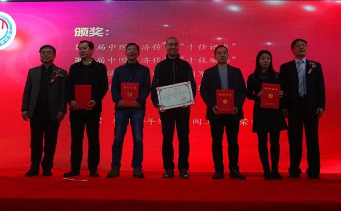 人民日报原经济社会部主任、中国经济传媒协会副会长皮树义,中国记协原国内部主任、中国经济传媒协会副会长孙兆华与“十佳记者”获奖代表合影