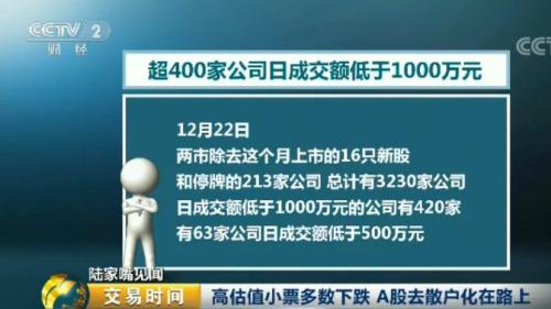 上周五的A股交易数据显示:12月22日,这两市去除这个月上市的16只新股和停牌的213家公司,总计有3230家公司,日成交额低于1000万元的公司,有420家,其中有63家公司的成交额,甚至低于了500万元,成交非常低迷,可以说已经被市场边缘化。