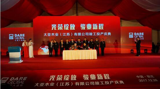 庆典仪式中还举行了集体签约会,大亚木业(江苏)有限公司与客户签订了2018年销售合同。据主持人介绍,现场签约的销售量已超这条生产线年生产量的半数。