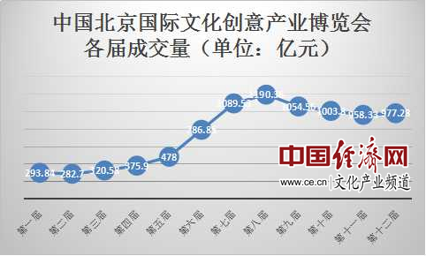 中国北京国际文化创意产业博览会占据首都北京的地理优势,充分展示中国文化产业发展的新面貌、新趋势。从其各届成交量可以看出,最近几届中国北京国际文化创意产业博览会成交额比较平稳,都在千亿元左右。