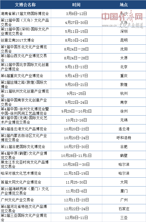 随着人们对精神文化需求的不断增长,大大小小的文博会犹如一颗颗蕴含着强大文化力量的种子在全国各地落地生根。岁末年终,中国经济网文化产业资讯部编辑梳理了本年度全国20多场文博会,让我们一起看看这些文博展会都有哪些“宝贝”?