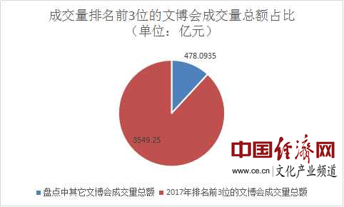 据统计,第13届中国(深圳)国际文化产业博览交易会、第12届中国北京国际文化创意产业博览会和第10届海峡两岸(厦门)文化产业博览交易会的成交量总额达到3549.25亿元,占全国成交总量的88.13%。这3个文博会都是国家级的文博会。