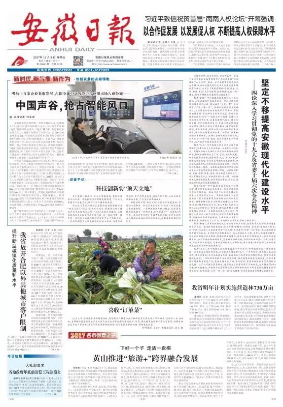 党的十九大提出,创新是引领发展的第一动力,是建设现代化经济体系的战略支撑。报道紧扣安徽的“创新实践”和“创新特色”,激发全省上下在创新之路上扎实奋进。“把创新作为最大政策,下好创新‘先手棋’”,首篇报道《安徽创新,激活发展第一动力》以习近平总书记视察安徽时的这句话为“魂”统揽全局;以省委书记李锦斌的讲话:“创新是我省未来发展的最大潜力;创新驱动发展要打造‘主基地’‘主引擎’‘主抓手’”为“线”贯穿始终;以“悟空”卫星BGO量能器、墨子号、“人造太阳”等多项“安徽创造”重大成果为“点”穿插其中,展现了安徽科技创新“从跟跑到领跑、从盆景到风景、从被动到主动”的壮丽嬗变和将创新发展行动作为五大发展行动计划之首,勇闯创新发展的领跑之路的强劲势头。
