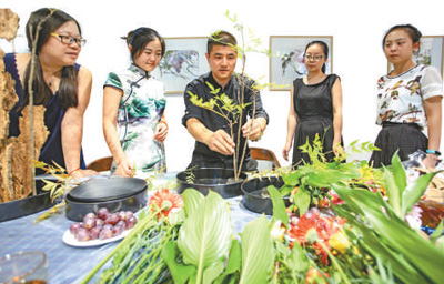 宁波市民在甬之美艺术交流中心学习插花。资料图片