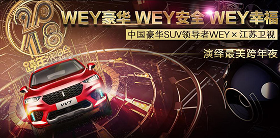 2017年12月31日,元旦钟声即将敲响之际,央视以及多家地方卫视推出跨年演唱会与广大电视观众一同迎接新年的到来。当晚,长城汽车整出营销“大动作”——旗下两大品牌哈弗、WEY分别赞助湖南、江苏卫视演唱会,成为当晚最吸睛的汽车品牌。