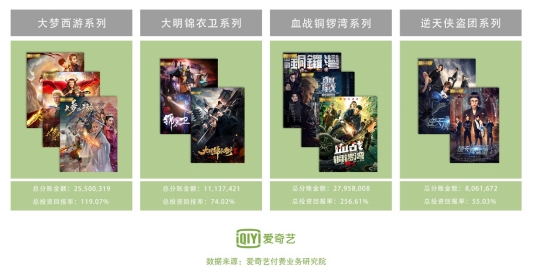 淘梦、映美、奇树有鱼等纯网内容公司在分账票房和投资回报率榜单中占据多席。公开信息显示,这些位列爱奇艺票房榜的纯网公司不仅收获了可观票房分账收入,同时在资本市场崭露头角,纷纷获得巨额融资。以淘梦公司为例,分账TOP10片单中占据4席;投资回报率TOP20中占据6席。淘梦作为最早一批入局网大的公司,基本见证并参与了市场整个的发展历程,2017年11月9000万B轮融资,正筹划新三板上市。除淘梦外、新片场、奇树有鱼、映美等优秀的纯网内容公司也赢来诸多资本市场的好消息。资本注入证明今年网络电影头部内容的力量将远远超过高投资回报本身,内容崛起将长远影响到产业链的各个环节。今年纯网内容公司品牌的初步形成和逐渐壮大,成为行业的先行和既得利益者,依托优质内容的成长模式有望复制给更多新生公司。