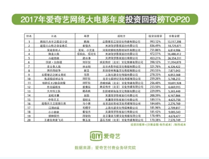 网大市场“二八法则”成定律,数据透明促使行业公平竞争。2017年在爱奇艺平台审核不予上线的网大数量达到20%。这些作品大部分是因为在专业创作、人才和创意上有所缺失;平台严格审核标准后,大量不符合社会主流价值观、软色情、擦边球、蹭IP被全面挤压出局,投机没有生存空间。过度依赖平台站内资源,缺乏营销意识,营销定位不准确是部分合作方的误区。今年在题材扎堆、跟风、缺乏前期对商业市场的预测和调查、盲目扩大投资、缺乏风险控制等问题依然层出不穷。宏观来看,市场当中的投机内容、低俗内容将会一直存在,但在微观上,这样的内容将会呈现迅速的“新生——死亡”不断循环的过程。