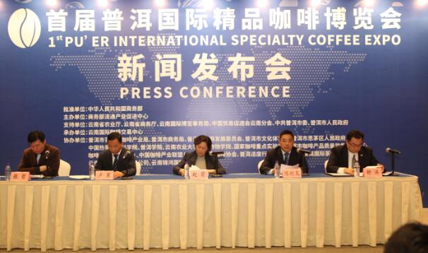 1月22日,首届普洱国际精品咖啡博览会在北京举行新闻发布会。商务部流通产业促进中心副主任赵箭,普洱市委常委、市政府副市长陈时见出席发布会并作新闻发布;云南国际咖啡交易中心总经理舒洋作品牌推介。赵箭、舒洋回答记着提问。