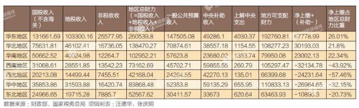 七大地区财力贡献盘点