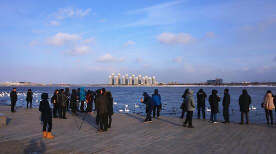 “每年冬季,近万只天鹅会飞抵山东荣成越冬栖息。荣成,除了美丽的天鹅,吸引我的还有蓝天白云。我们这帮摄影+旅游爱好者每年的这个季节都会到荣成”在北京-荣成的高铁上,一位北京的摄影爱好者向记者边说边展示着他相机里的图片。