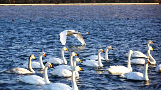 据荣成市政府新闻办主任刘兆阳介绍,大天鹅对生态的要求极高,“A97”大天鹅能够连续9年来荣成过冬,说明荣成的生态的优良程度是非常好的,这里的人们对它是非常友好的。目前荣成除了有烟墩角、天鹅湖、樱花湖、湿地公园等多个大天鹅集中生活区域外,市区、乡村的沿海,湖面、水库大都可以看到大天鹅、黑尾鸥和其它的鸟类。