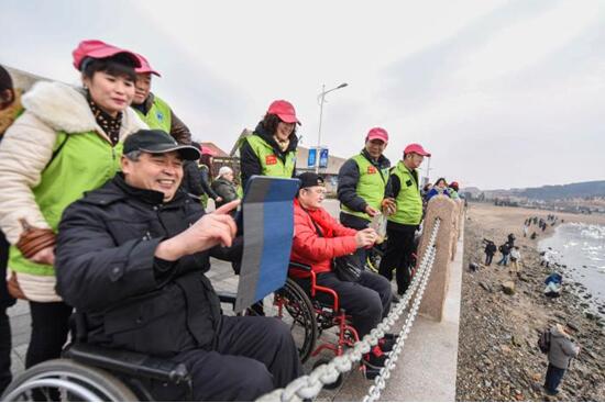 1月18日上午,23位残疾人在志愿者的陪同下,来到俚岛镇烟墩角社区高兴地赏鹅、观景、拍照,脸上始终挂满灿烂的笑容。中国产业网记者从荣成市志愿者服务联合会记者了解到,类似这样的活动,在荣成数不胜数。目前荣成市已经注册登记的志愿服务组织有330多家,注册的志愿者接近9万人。他们开展的阳光助残、文明交通、邻里守望、环保行动、情暖夕阳等主题志愿活动,几乎每天都在进行着。截至目前,已发起志愿服务活动5200多场次,参与志愿者达20多万人次。