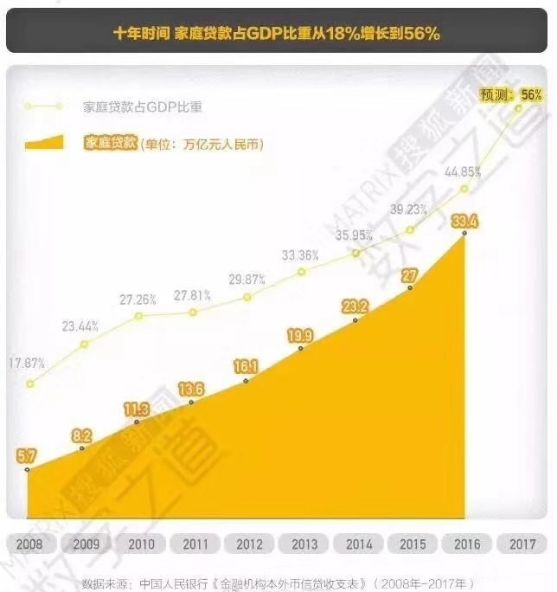 有关统计显示,2008年,中国全部家庭贷款才5.7万亿元,而到了2017年,这个数字预计接近50万亿元。由此可见,房地产金融化和泡沫化之严重。