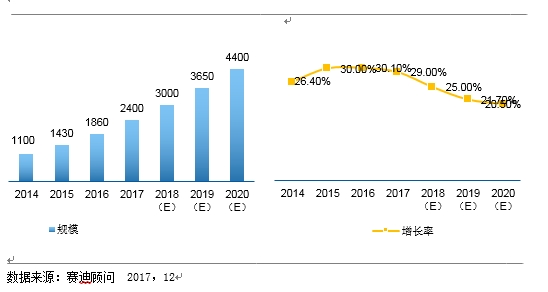 我国工业物联网的发展也由过去的政府主导逐渐向应用需求转变。2016年我国工业物联网规模达到1896亿元,在整体物联网产业中的占比约为18%。预计在政策推动以及应用需求带动下,到2020年,工业物联网在整体物联网产业中的占比将达到25%,规模将突破4500亿元(如图2)。