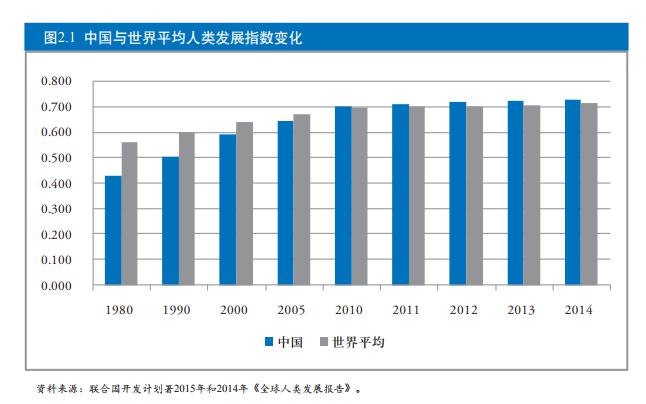 《中国人类发展报告2016》得出的结论也印证了上述数据所反映的发展成就。报告指出,中国的人类发展进步在收入与减贫、健康、教育和政治社会参与等各个方面都得到了体现。 “进入21世纪以来,社会政策在中国日益得到重视,对教育、卫生、社会保障的政府投入不断加大,社会服务的可及性持续改善,并实施了一系列旨在促进公平的改革。社会政策正在对促进人类发展发挥更加积极的作用。”