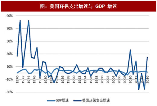 图:美国环保支出增速与 GDP 增速 我国的环保政策起步于 20 世纪 80 年代,早在 1984 年和 1988 年就颁布了《水污染防治法》和《大气污染防治法》,但是配套政策的出台一直比较慢。