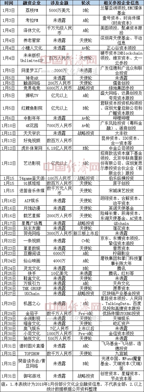 附:1月部分文化企业融资信息表
