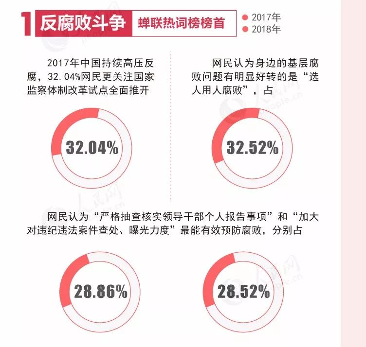 在过去16年的两会调查中,“反腐”议题7次成最受网民关注的热点,今年再度蝉联热词榜榜首。