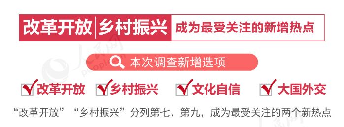 改革开放、乡村振兴是首次作为热点出现在两会调查,分列第七第九,成为最受关注的两个新热点。