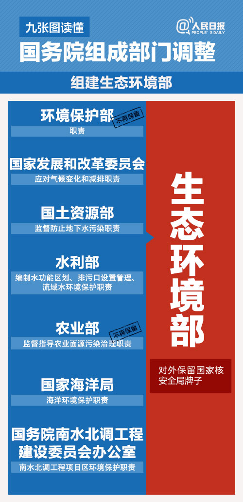@人民日报:#全国两会#[重磅!九张图读懂国务院组成部门调整]今天,国务院机构改革方案提请审议。改革后,除国务院办公厅外,国务院设置组成部门26个。调整涉及哪些部门?