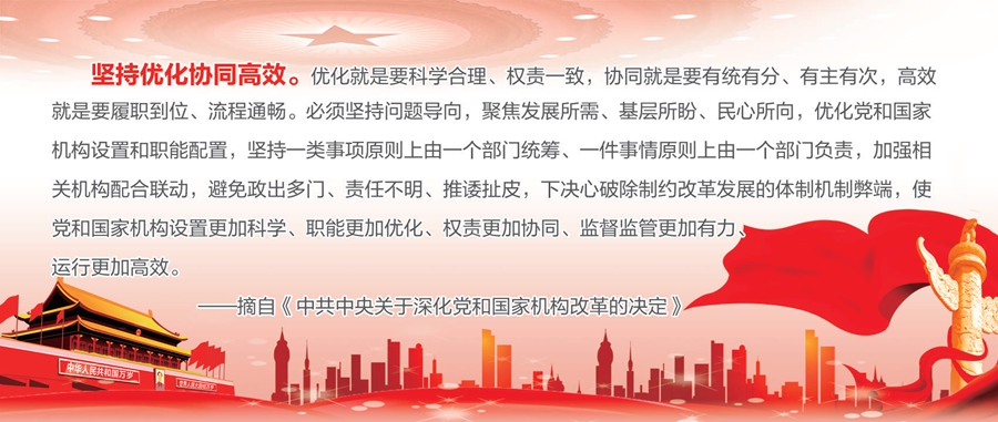 “本次国务院机构改革方案,科学合理、权责一致,很好地解决了国家机构职能体系中存在的障碍和弊端,更符合统筹推进‘五位一体’总体布局、协调推进‘四个全面’战略布局的要求和实现国家治理体系和治理能力现代化的要求,有利于强化党的组织在同级组织中的领导地位。”云南省安宁市委书记王迅表示。