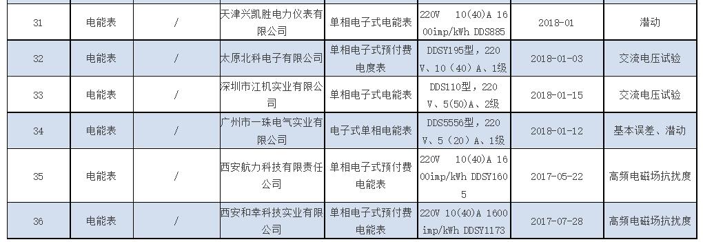 附:2018年第1批产品质量国家监督抽查36家不合格企业名单