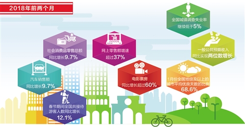 3月14日,国家统计局发布了2018年前两个月国民经济运行数据。数据显示,1月份至2月份,我国规模以上工业增加值同比实际增速加快,服务业持续增长,固定资产投资平稳增长且结构继续优化,消费市场较为活跃,新业态新消费发展迅速,经济运行起步向好。