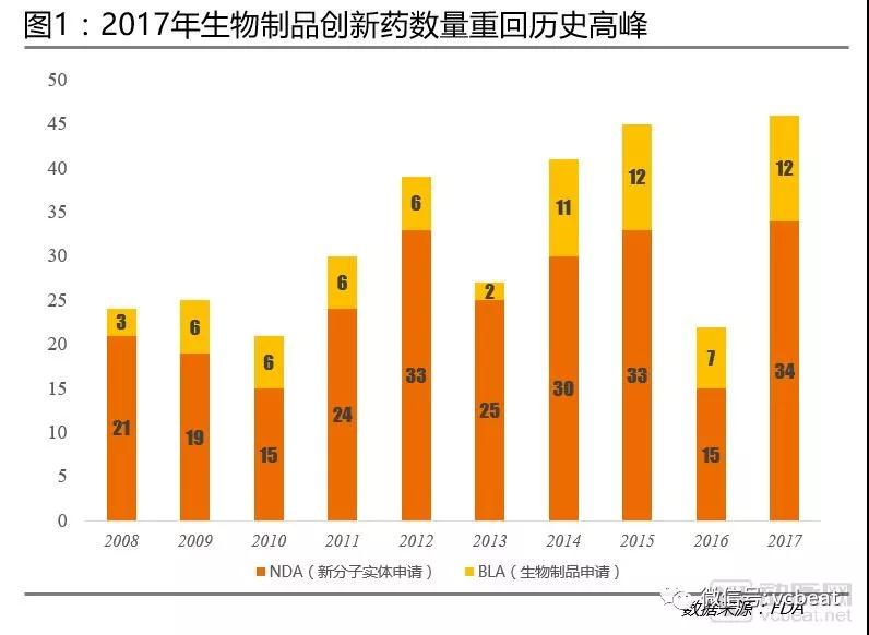 FDA官方公布,2017年CDER(FDA药品审评与研究中心)批准了12个生物制品创新药,重回历史高峰。