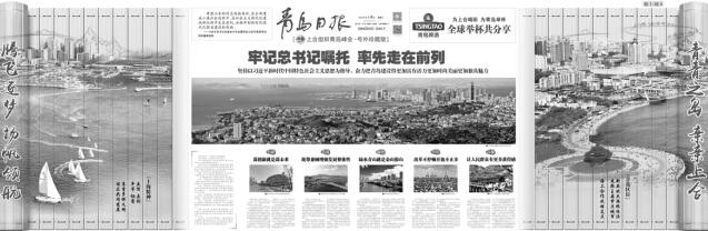 6月9日,《青岛日报》推出上海合作组织青岛峰会·号外珍藏版,将8个版面连成一幅恢宏长卷,形式新颖有气势,主题鲜明突出,述评画龙点睛,传统元素与现代图文相得益彰,上海精神与青岛峰会传承统一,时代主题与本土目标以小见大,体现出策划的匠心独具。