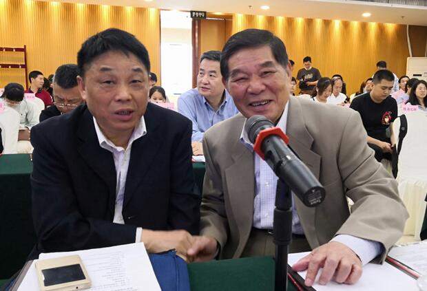国家林业和草原局科技委副主任、原林业部副部长蔡延松(右)与原总后勤部财务部副部长刘书记亲切交谈