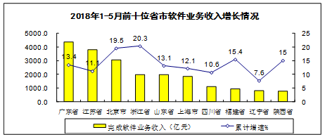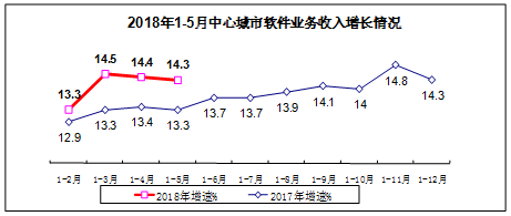 中心城市软件业收入和利润同比均保持增长。1-5月,全国15个副省级中心城市实现软件业务收入13239亿元,同比增长14.3%,增速同比提高1个百分点,占全国软件业收入比重56.8%。中心城市软件业实现利润增长9%,增速比1-4月提高0.4个百分点,低于同期全国平均水平1.3个百分点,但营业利润率仍持续高于全国平均水平。