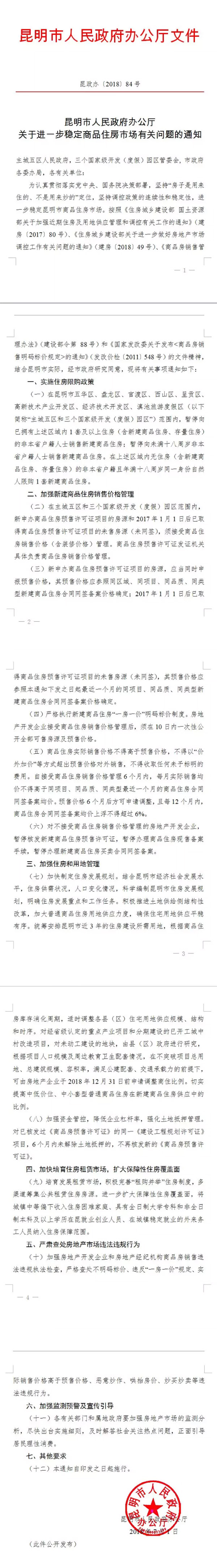 云南昆明实施住房限购政策:通知明确,在昆明市五华区、盘龙区、官渡区、西山区、呈贡区、高新技术产业开发区、经济技术开发区、滇池旅游度假区范围内,暂停向已拥有上述区域内1套及以上住房(含新建商品住房、存量住房)的非本省户籍人士销售新建商品住房;暂停向未满十八周岁非本省户籍人士销售新建商品住房。在上述区域内无住房(含新建商品住房、存量住房)的非本省户籍且年满十八周岁同一身份自然人限购1套新建商品住房。