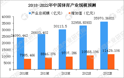 近年来,国中家大力支持体育产业的发展。2016年国家体育总局发布《体育产业发展“十三五”规划》中指出,到2020年中国体育产业总规模要超过3万亿,从业人员数超过600万人,产业增加值在国内生产总值中的比重达1.0%,体育服务业增加值占比超过30%。竞赛表演业、健身休闲业、场馆服务业、体育中介业、体育培训业、体育传媒业、体育用品业和体育彩票作为发展的重点行业。