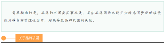 需要指出的是,品牌的巩固要实事求是,有些品牌因为未能充分考虑消费者的接受能力等各种非理性因素,结果导致品牌巩固的失败。一些品牌在起初的建立过程中十分夸大自己的特色,品牌建立之后却又急匆匆地把触角移及其他领域,如此做法只会引起消费者的不信任感,大大地增加了失败的风险。例如某地板一线品牌,近些年广泛涉猎房地产和其他木业品类,由于跨界太大,人才队伍和资金储备不足够,导致全线受损;某著名木门品牌,急于扩张,不加严格选择,到处圈地建厂,委托小厂加盟,致使质量不够稳,品牌蒙污。此外,品牌的巩固应该给人前后统一的感觉,假如令消费者产生迷惑,那么这种巩固也不可能成功。如以厨具清洁剂为主要产品的品牌向厕所清洁剂的扩展,就极有可能引起消费者的反感。