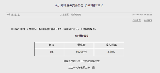 中国央行今日开展一年期中期借贷便利(MLF)操作5020亿元,利率3.30%与上次持平,无逆回购操作。今日有1700亿元逆回购到期。