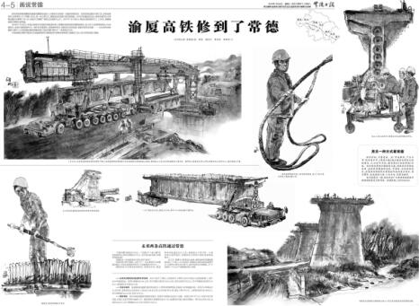 从读者对《画说常德》的反响来看,尝试用水墨画呈现新闻达到了预期的效果。如《常德日报》2018年年初的《画说常德》,呈现的是渝厦高铁修到了常德的新闻。新闻题材重大,涉及国家重点工程。两个版面的篇幅、现场写生手绘的多幅水墨画、简明扼要的文字说明,大气呈现出了渝厦高铁修到常德的场景。