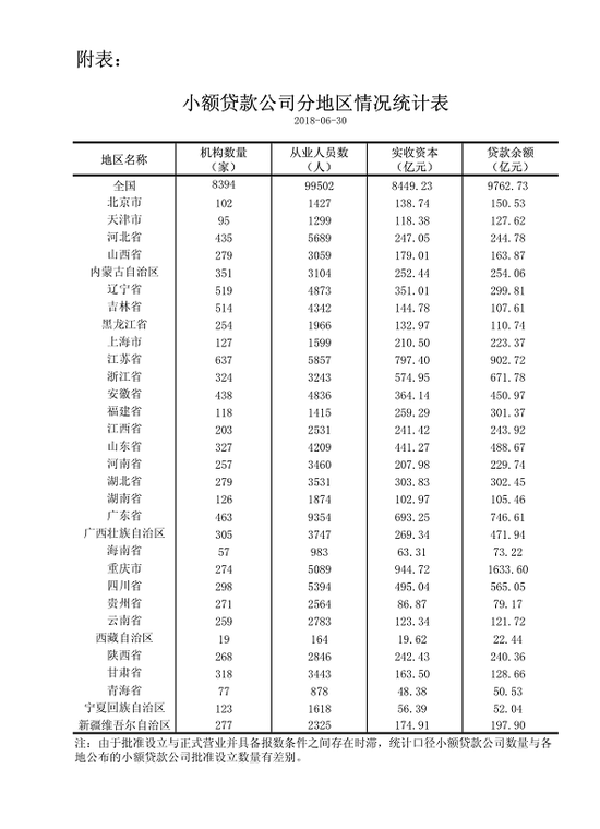 今日,央行官网发布2018年上半年小额贷款公司统计数据报告。截至2018年6月末,全国共有小额贷款公司8394家。贷款余额9763亿元,上半年增加22亿元。