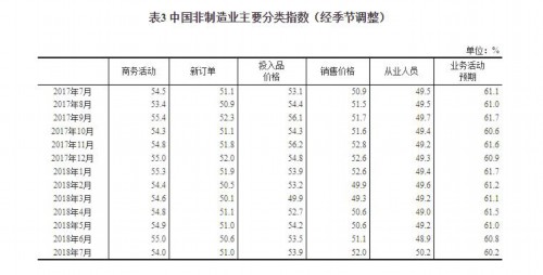 统计局解读:2018年7月中国制造业采购经理指数和非制造业商务活动指数延续扩张态势